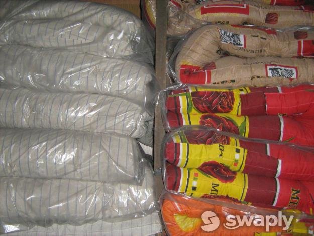 постельные принадлежности в широком ассортименте: матрасы (ватные, РВ, ППУ, холкон, пружинные ортопедические), подушки (синтепон, холлофайбер, лебяжий пух, пух-перо и др.), одеяла (синтепон, холлофайбер, лебяжий пух, полушерстяные и др.), пледы, покрывала (гобелен, ультрастеп и др.), КПБ (бязь, бязь ГОСТ, полиэстер, поликоттон, сатин, ситец, ), полотенца (махровые, вафельные) и мн. др.