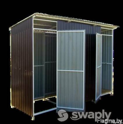 Быстровозводимый дачный хозблок представляет собой каркасное строение, состоящее из стального, металлического каркаса и обшивки из профилированного металлического листа. Конструкция быстровозводимого каркаса хозблока предусматривает возможность производить не только наружную обшивку, но и внутреннюю тоже, с размещением утеплителя внутри стены. Разнообразие строительных материалов на рынке позволяет выбрать варианты отделки, что даёт возможность своими руками построить быстровозводимую дачную бытовку по своему вкусу