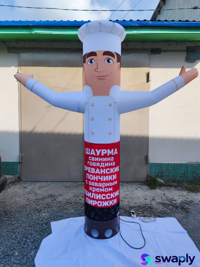 Надувная фигура, надувной повар, надувной человек, аэромен, зазывала, фигура с машущей рукой.
