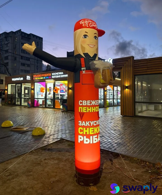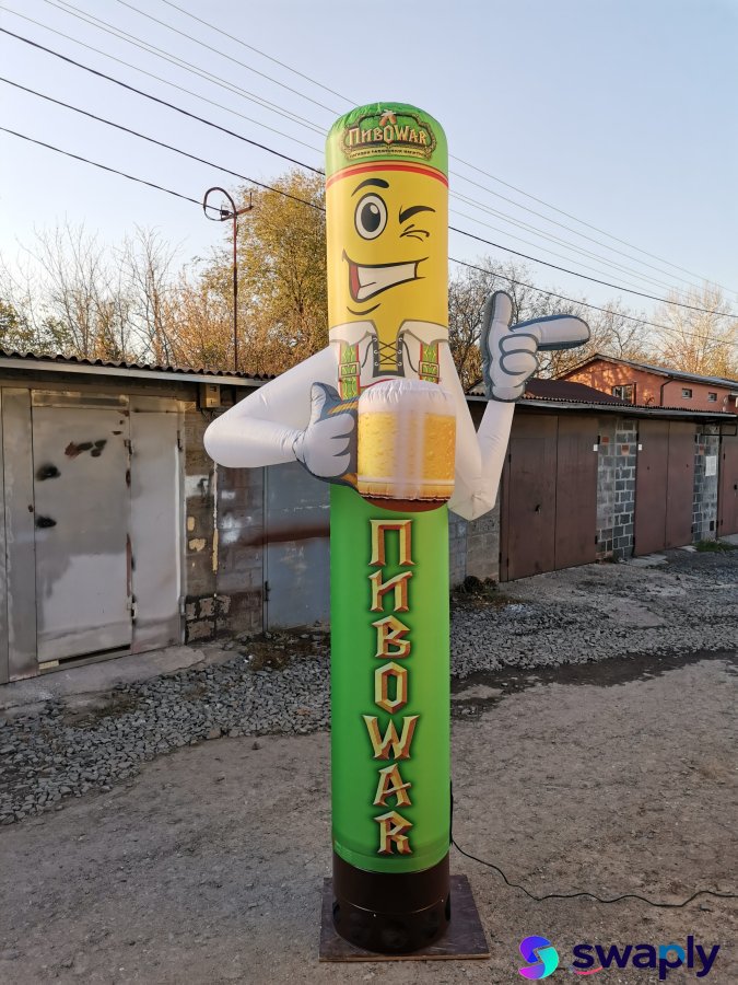 Лето в разгаре, и жара заставляет нас искать освежающие напитки! Привлеките внимание прохожих к Вашему магазину разливных напитков с помощью наших уникальных надувных фигур с машущей рукой.