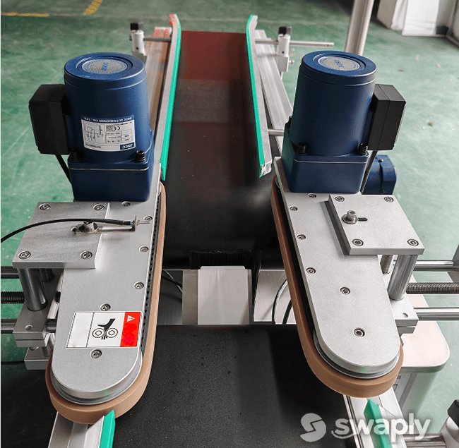 Синхронный привод: Скорость движения верхнего прижимного ремня (или роликов) полностью синхронизирована со скоростью конвейера. Это исключает возникновение крутящего момента, который может привести к перекосу этикетки.