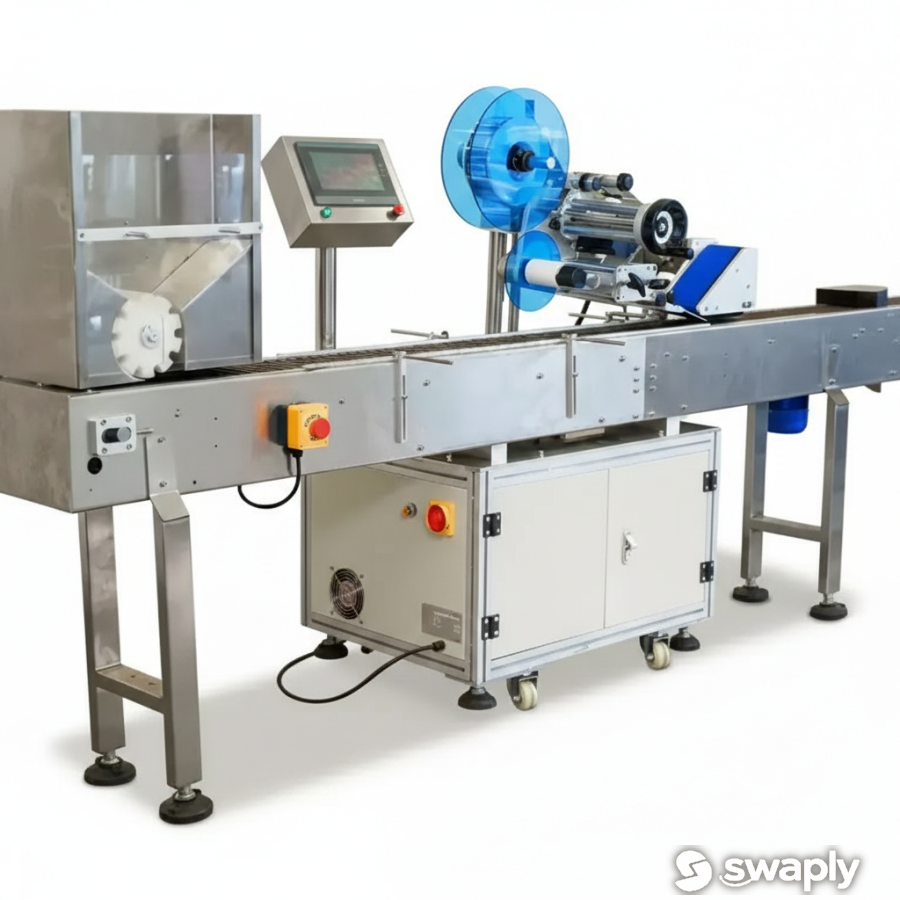 Высокопроизводительная горизонтальная этикетировочная машина. Спроектирована для автоматической маркировки цилиндрических предметов малого диаметра (ампулы, флаконы). Горизонтальная конвейерная система обеспечивает стабильное вращение и точное наклеивание на скоростях до 150 единиц в минуту. Тех. Характеристики: