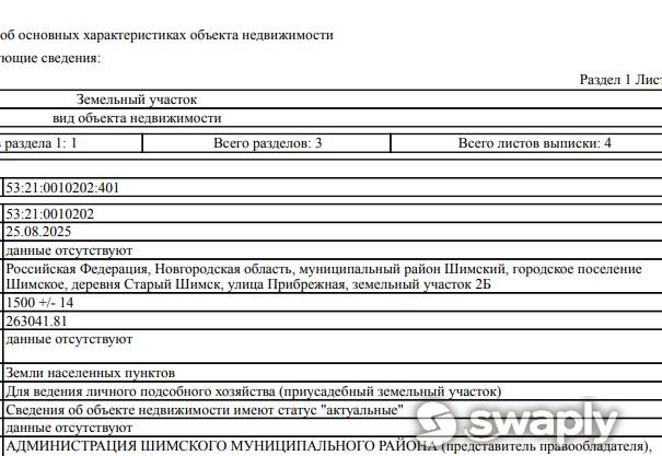 Адрес Новгородская область, муниципальный район Шимский, городское поселение Шимское, деревня Старый Шимск, улица Прибрежная, земельный участок 2Б
