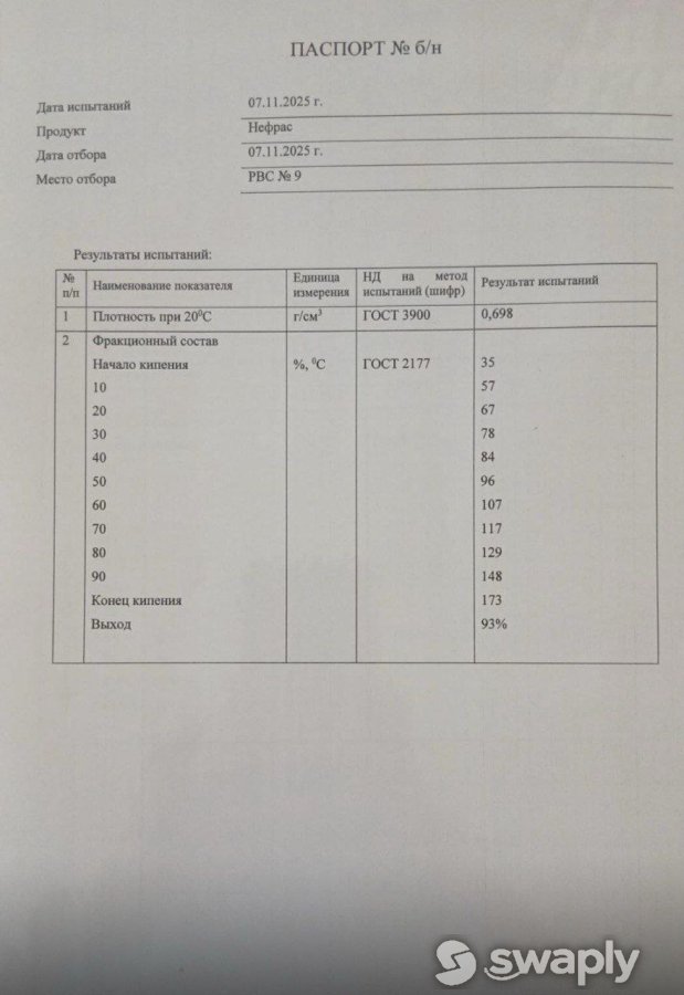 Товар: Прямогонный бензин (фракция НК-180/НК-200 и др.).