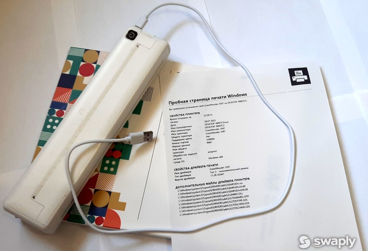 Для любой печатной работы, офиса, учёбы. Лёгкий, компактный, помещается даже в женскую сумочку, рюкзачок, сумку ноутбука. Вес 726 грамм. Размер: 265x58x30mm / 10.4x2.3x1.2in. Никакой краски и чернил: печатает на тепловой /термобумаге (продаётся в розницу и под заказ везде), которая дешевле (не уступает в плотности и качеству обычной). Никакого постоянного обслуживания чернильным специалистом. Себестоимость распечатанного 1 -100 листов и более, на порядок дешевле обычного принтера или услуг по распечатке. Bluetooth скоростное подключение и по USB-кабелю. Бесплатный драйвер для ноутбука, ПК прилагается (или ссылка прямого скачивания). Удобная и быстрая распечатка накладных, договоров, счетов и других важных бумаг. С приложением iprint вы можете легко распечатать документы, этикетки, фотографии и многое другое со смартфона или планшета. Вы также можете распечатать небольшие заметки и длинные баннеры, не боясь, что краска закончиться. Совместимые ОС: Android; iOS; Windows. Литейная батарея 1000mAh (включена) 1,5 часа. Заряжается около часа на 100 %. Время в режиме ожидания до 30 дней. Максимальное разрешение печати 200 dpi. Принтер не шумный. Продолжительность непрерывной печати: 90 листов. Скорость печати: 10 мм/с
